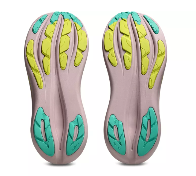 La semelle intermédiaire associe la mousse FF BLAST PLUS et la technologie PureGEL. Ces éléments offrent légèreté et amorti moelleux, donnant l'impression de rebondir sur un nuage.