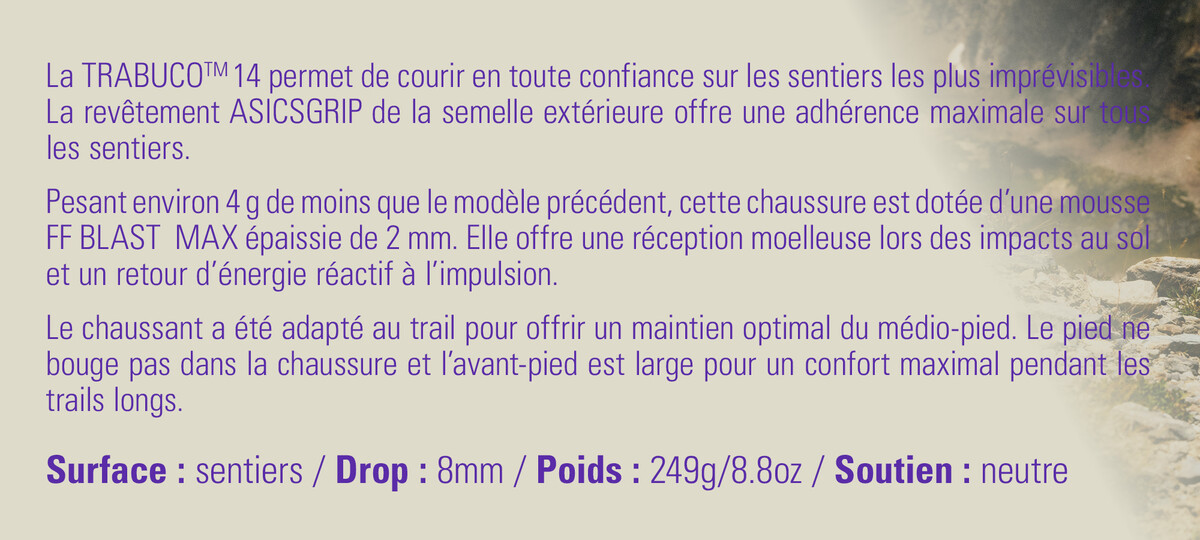 Découvrez la gamme Trabuco dans votre magasin Run Aventure. Des chaussures qui offrent un maximum d'adhérence et de confort pour courir sur les sentiers et partir à l'aventure en toute confiance.