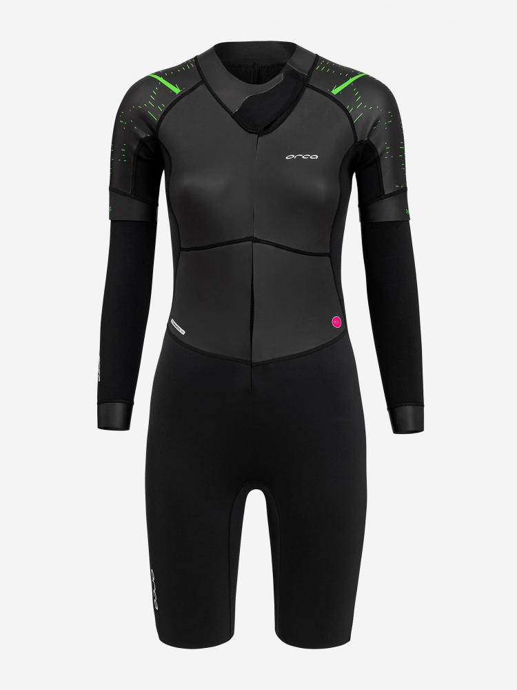 Le textile extérieur DuraSkin 2 sur la partie inférieure du torse protège cette combinaison de toute abrasion causée par les accessoires ou les obstacles que l'athlète peut rencontrer sur son parcours, augmentant ainsi la durabilité de sa combinaison Orca.